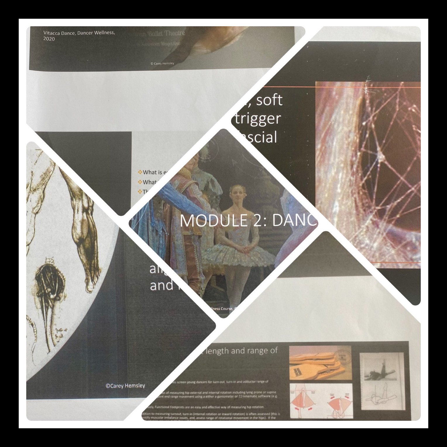 Focus is on practical application with curated subjects that are key to dancers and dance educators. All modules have practical application and relevance to the individual dancer with interactive ‘lab’ sessions. We advocate the empowering of ‘thinking’ dancers armed with the knowledge to enhance and injury proof their craft and performance.